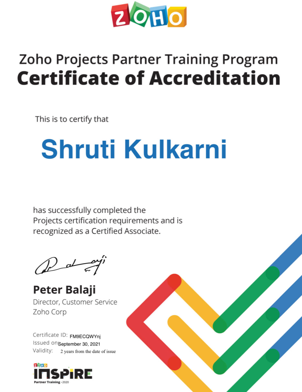 ZOHO Projects Associate Badge
