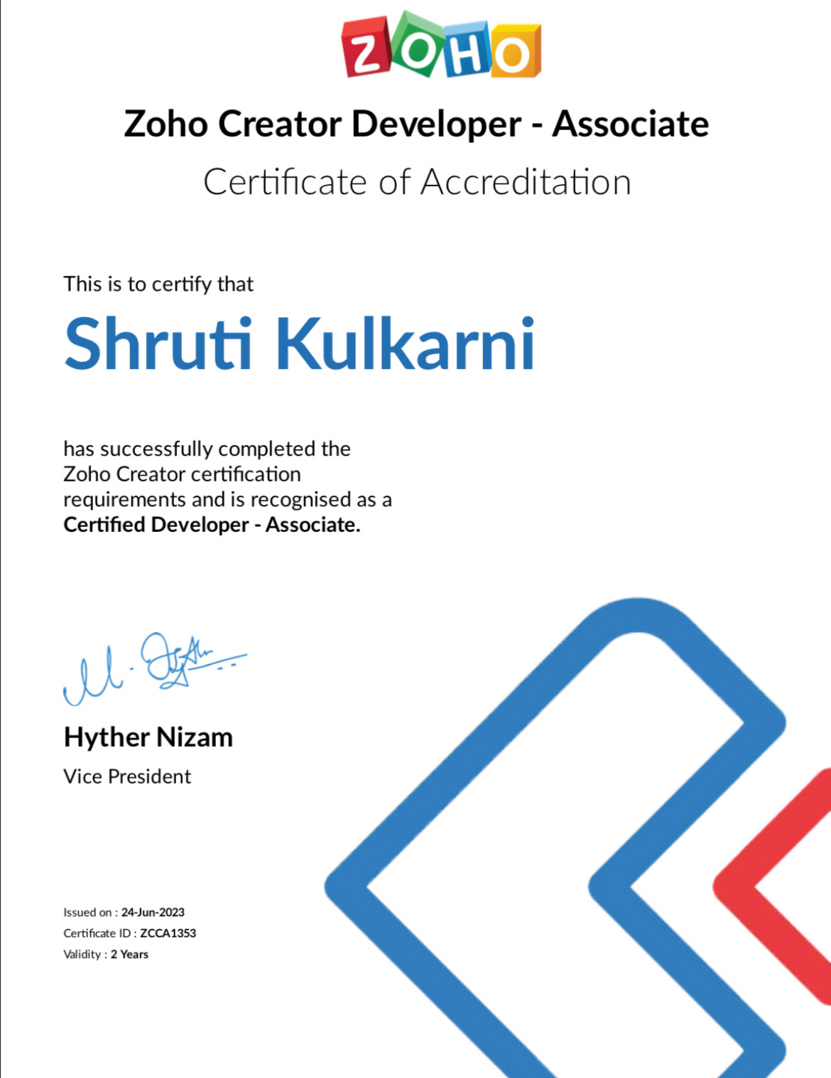 ZOHO Analytics Associate Badge